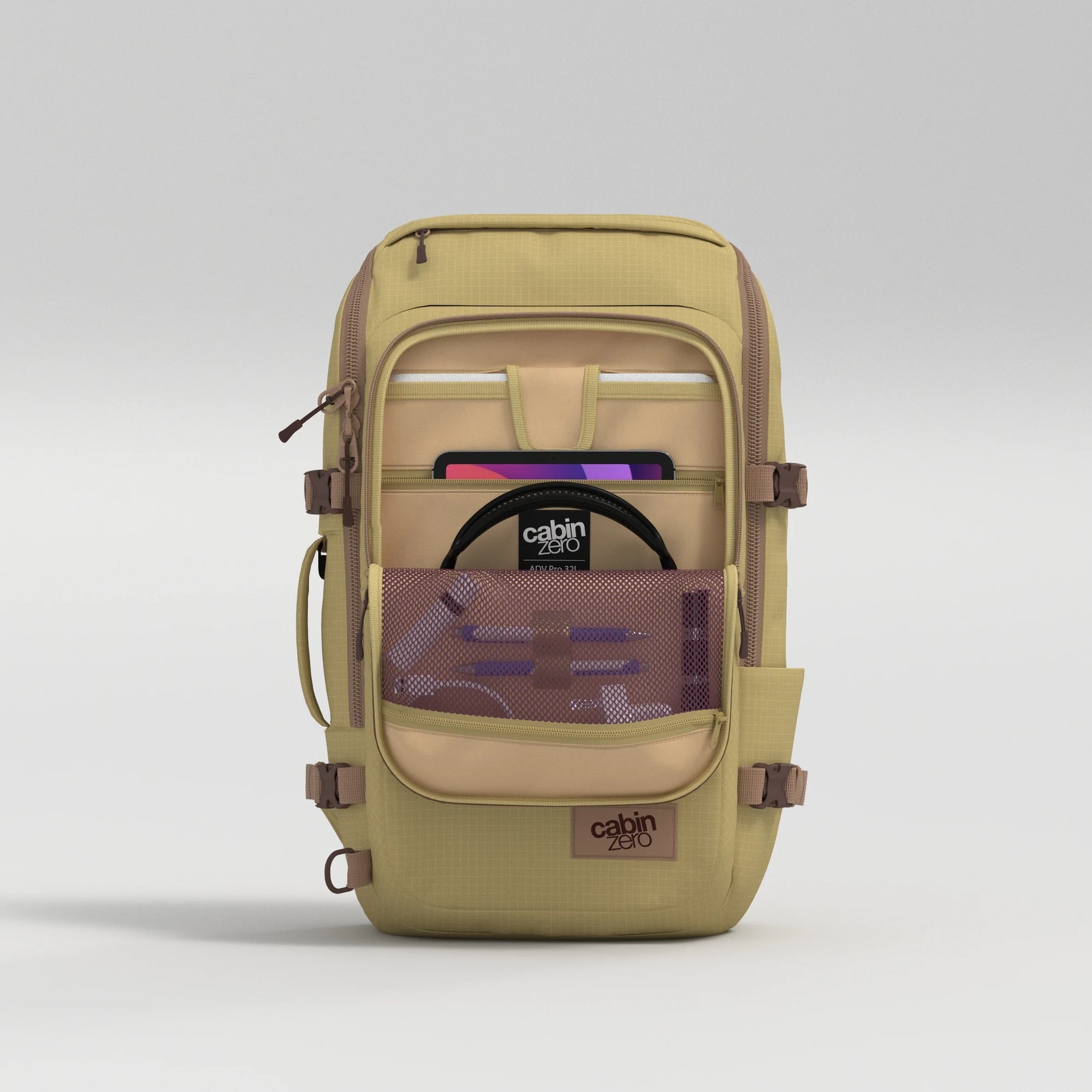 Compact but feature-rich. The ADV Pro cabin bag in Moonstone is for the discerning traveller. An EVA foam moulded back panel provides superior comfort and airflow, whilst the U-shaped design gives you total control over your pack-out. Available in 32L and 42L.