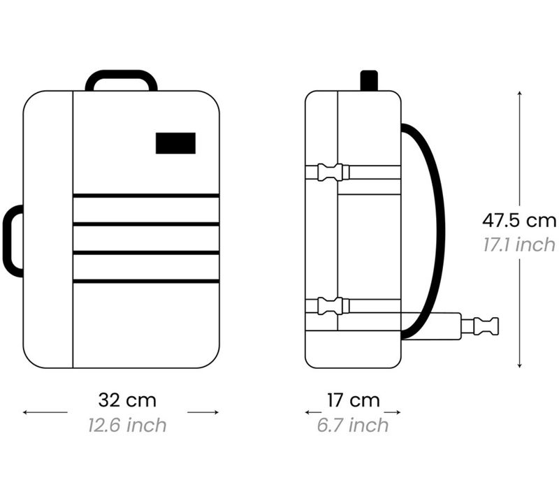 Our Military Backpack 36L has dimensions 47.5 x 32 x 17 cm, which can be brought on board for 115 airlines. Check airlines list below