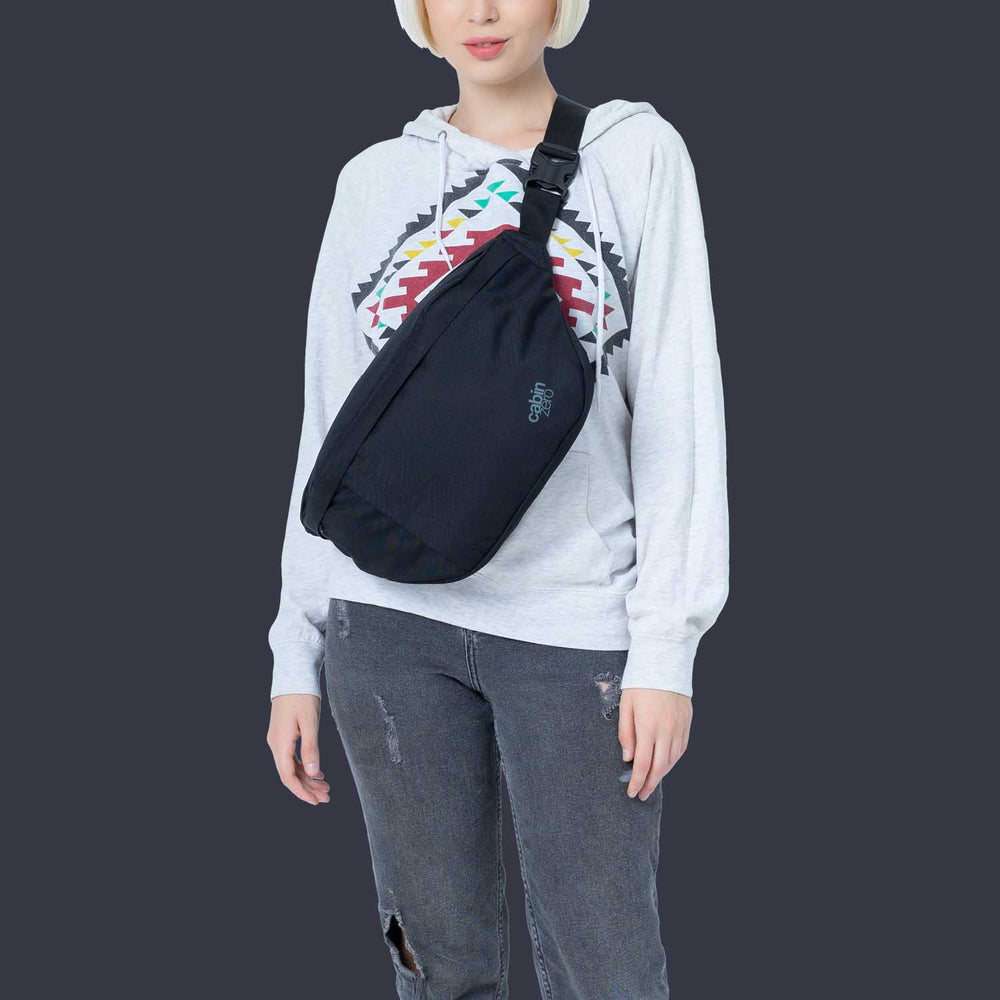 The CabinZero Hustle Bag in Navy is a remarkable fashion statement on your urban expeditions. This Hustle bag will keep your valuables safe and close at hand with its hidden RFID blocking pocket.